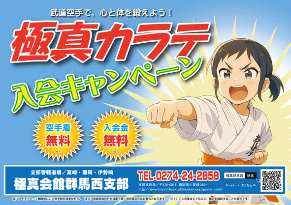注3)キャンペーン対象道場は、高崎・藤岡・伊勢崎の道場です。
